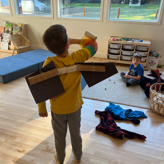 Spark Play, the hours dedicated to completely free, unstructured play each afternoon, is always a highlight for these heroes. This week they turned a box of toilet paper rolls into wings, binoculars, gauntlets and arm-mounted laser beam mechanisms! It's in moments like this my heart swells with gratitude. Reading, writing, and math; these are important life skills we all must learn, no matter what our path in life turns out to be. But let's not forget about childhood. The pure magic of their imagination. The fact that this window in life, this window of intense fantasy and creativity, where a rainbow slinky really does turn into a laser beam mounted arm gauntlet, where you really are a dragon avoiding capture by villainous dragon hunters, where you really do have all the magic powers in the world, is so, so very short. They do not get this time back. They cannot make it up down the road. The time is now. Let's let them live and thrive in this incredible world while they can. There's good stuff there.