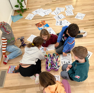 In the two hours they played, unobserved by an adult, I noticed a few breaches of our studio promises (ie: potty talk, which we've agreed is violating our promise to treat the studio as a sacred space, and lots of running!). We gathered on our circle rug and I asked them to rate themselves on their integrity during Spark Play, with 1 being the lowest (broke many promises) and 5 being the highest (played with great integrity, keeping all studio promises). As always, they were very self-aware and I saw ratings varying from 3-4 for the most part. I observed the wheels turning as they realized, acting with integrity is not always easy. I'm so thankful for this model, which allows children to gain lived experience and then reflect, for the deepest, most impactful learning. In this case, learning to be.