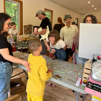 Thursday morning came and it was time to prepare the studio for our E-Ship Mini-Market! We began our day with a mindful meditation, calming our bodies and minds so we could focus on the important work at hand. The studio then kicked into high gear, with helpers volunteering to decorate the lobby, move furniture, sweep the floors, bring in tables and assist with the market layout. These heroes excitedly ran from table to table, checking out each other's businesses, offering up encouragement and enthusiastically requesting "holds" on their favourite items :) Before we knew it, it was 2:45 and our customers were arriving. They were ready.